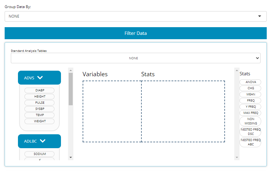 standard analysis tables from scratch by dragging and dropping pertinent