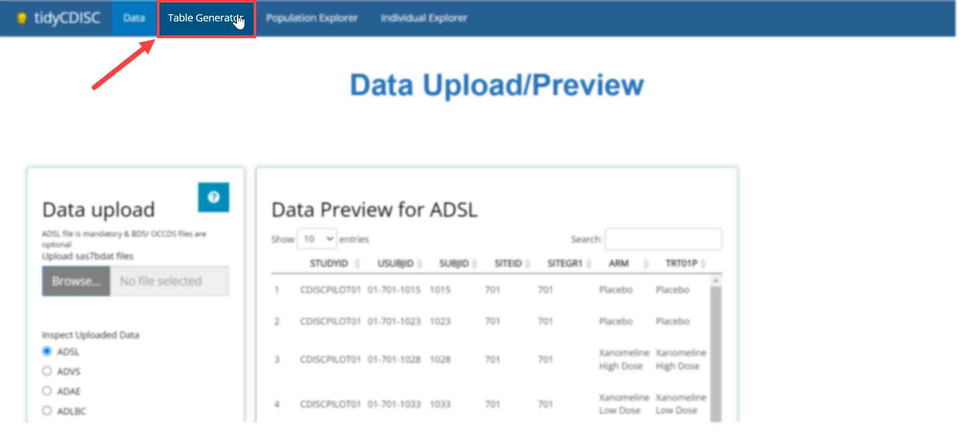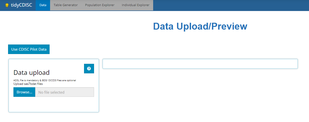 Upload feature and instead uses the CDISC pilot data.